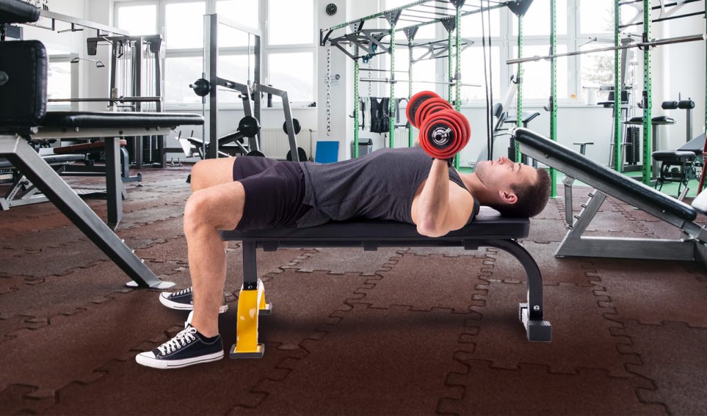 Posilovací lavice funguje nejlépe v sestavě, která má obsloužit celé tělo, ne jen jeden tlakový cvik
